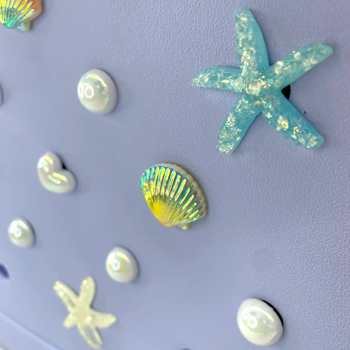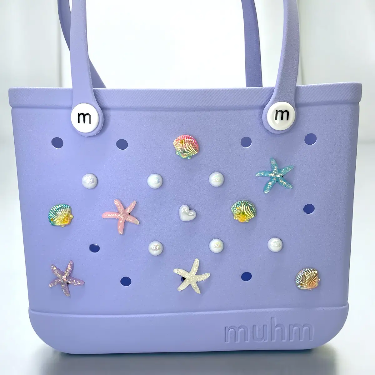 A Muhm Charm – kagylók egyedi és természet ihlette kiegészítő, amely kagyló formájával és tengeri hangulatával feldobja bármely táska megjelenését. PVC anyagból készült, így tartós és könnyen tisztítható, miközben a tengerparti életérzést csempészi a hétköznapokba. Könnyen rögzíthető bármely Muhm Bag táskához, így különleges és nyári hangulatú kiegészítőt ad stílusodhoz.