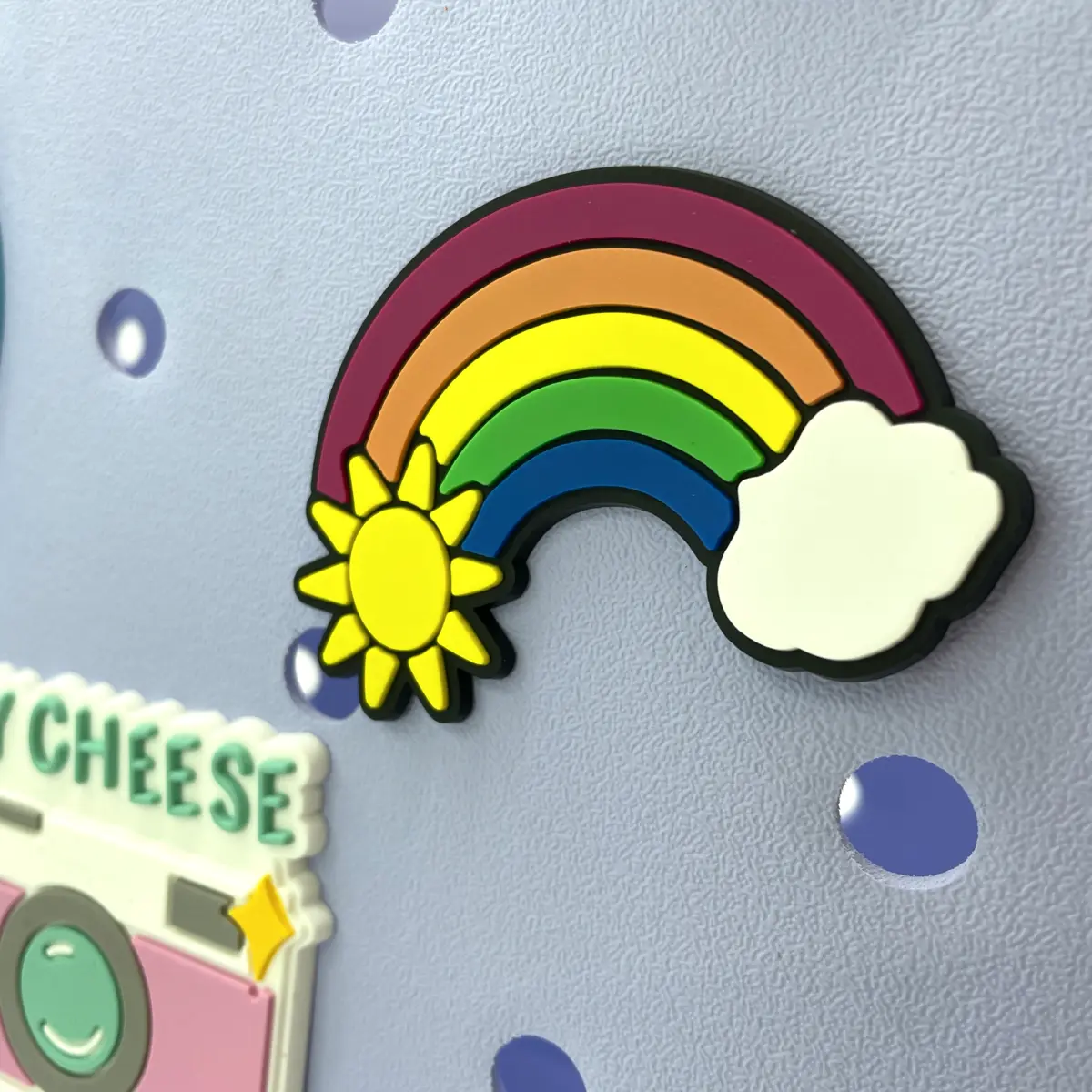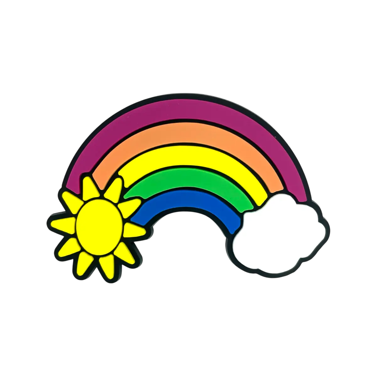 A Muhm szivárvány charm minden táska vidám és pozitív kiegészítője. A színes ívek és a napocska mosolyt csalnak az arcodra, bármikor ránézel. Dobd fel vele táskádat és hozd magaddal a szivárvány boldogságát!