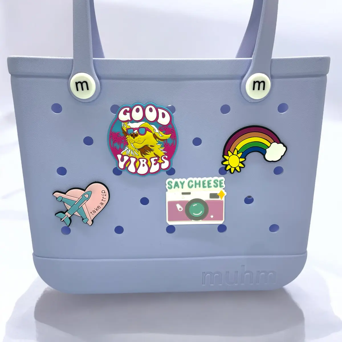 Engedd, hogy a Muhm szivárvány charm elhozza neked a jókedvet minden nap! Ez az apró, mégis lenyűgözően színes kiegészítő a napocskával és a felhővel garantáltan feldobja táskád megjelenését. Akár egyedi stílusod kifejezésére, akár egy kis derűs hangulat hozzáadására használod, ez a charm mindig tökéletes választás. Könnyen rögzíthető a Muhm táskák bármelyik típusára és ideális kiegészítő lehet színes személyiségeknek.