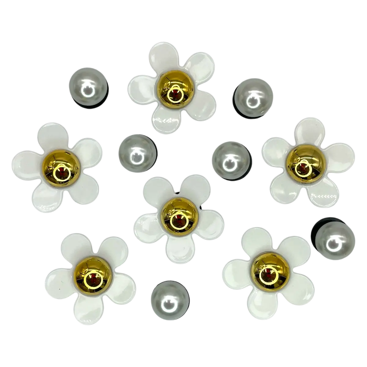 A Muhm Gyöngy – fehér egy elegáns és időtlen charm szett, amely fehér virágokkal és gyöngyökkel díszíti táskád. A fehér szín tiszta és kifinomult megjelenést kölcsönöz, amely remekül illik mindennapi és különleges alkalmakhoz is. Tartós anyagból készült és könnyedén rögzíthető bármely Muhm Bag táskához, hogy stílusodat finom és klasszikus kiegészítőkkel gazdagíthasd.