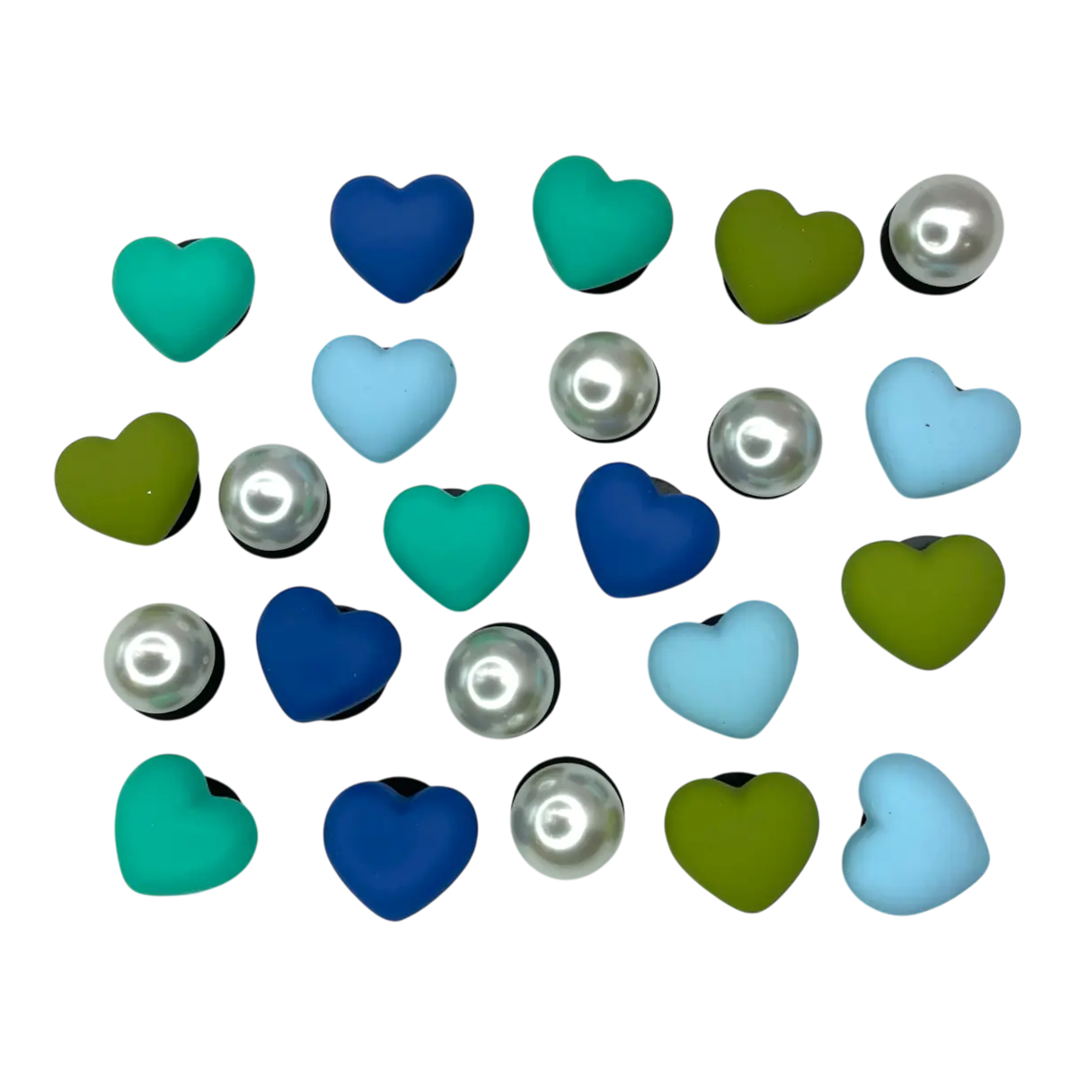 A szívek könnyedén rögzíthetők a táskára és a hűvös árnyalatok elegáns, természetközeli megjelenést kölcsönöznek. Ideális választás, ha szeretnéd kiemelni táskád egyedi jellegét, miközben harmóniát viszel a megjelenésedbe.