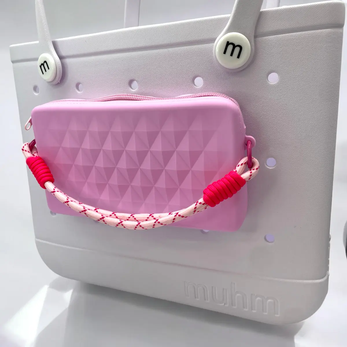 A rózsaszín Muhm Kistáska praktikus és sokoldalú kiegészítő, amely önállóan is használható, de a Muhm Bag-hez is könnyedén rögzíthető. Ideális választás kisebb tárgyak rendszerezésére.