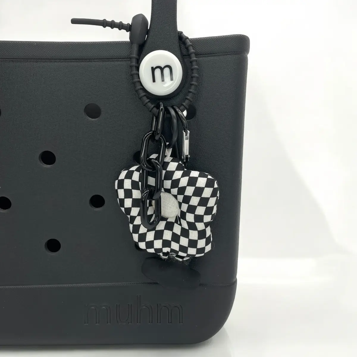A kockás virág Muhm Kulcstartó modern és játékos kiegészítő, amely fekete-fehér kockás mintájával stílusos kontrasztot teremt. A virágforma és a minta különleges kombinációja garantáltan magára vonja a figyelmet, miközben egyedivé teszi a Muhm Bag táskád megjelenését.