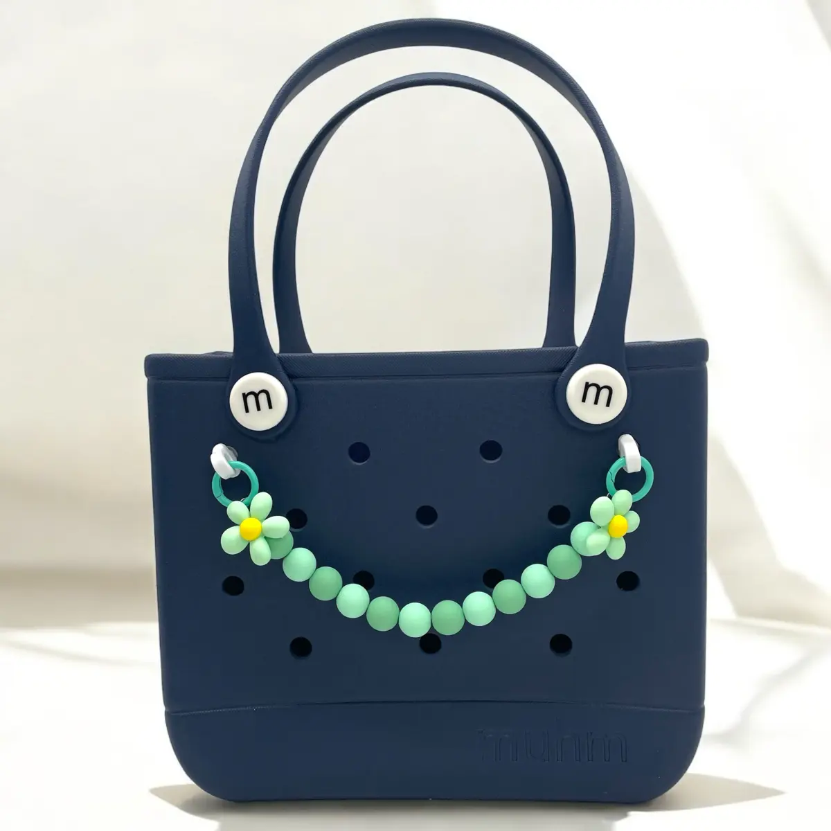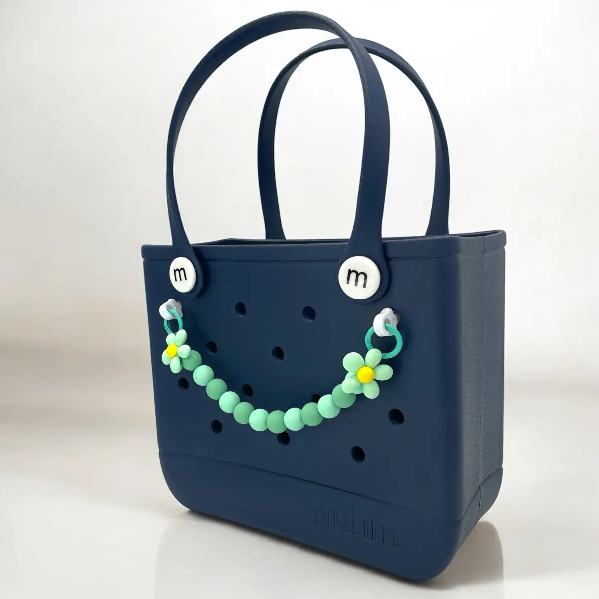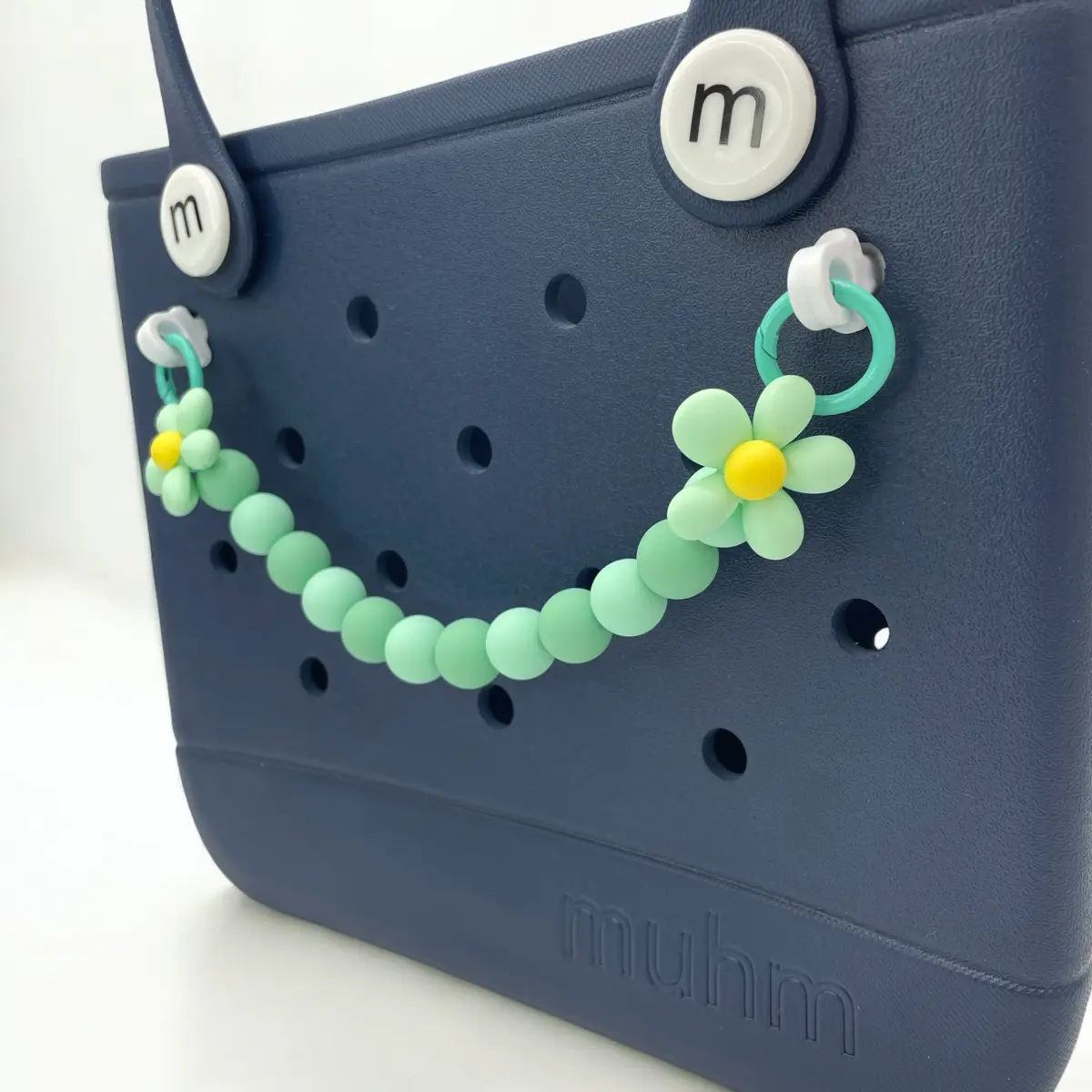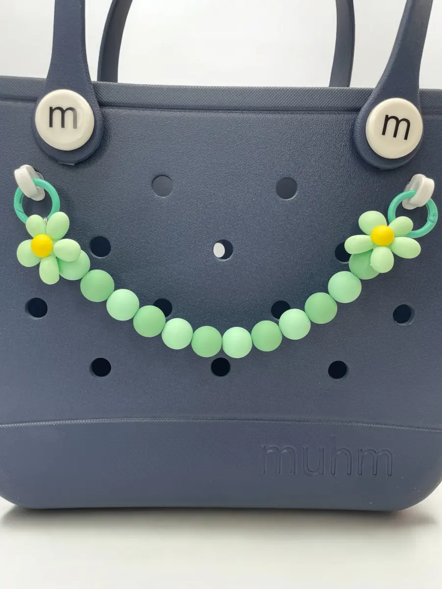 A türkiz Muhm Lánc a természet inspirálta dizájnjával és egyedi virágos részleteivel különleges megjelenést biztosít táskádnak. Az élénk színek és a gondosan kidolgozott gyöngyök vidám hangulatot árasztanak, miközben könnyedén kombinálhatók bármelyik Muhm Bag modellel. Az egyszerű rögzítőmechanizmusnak köszönhetően gyorsan és biztonságosan csatlakoztatható.