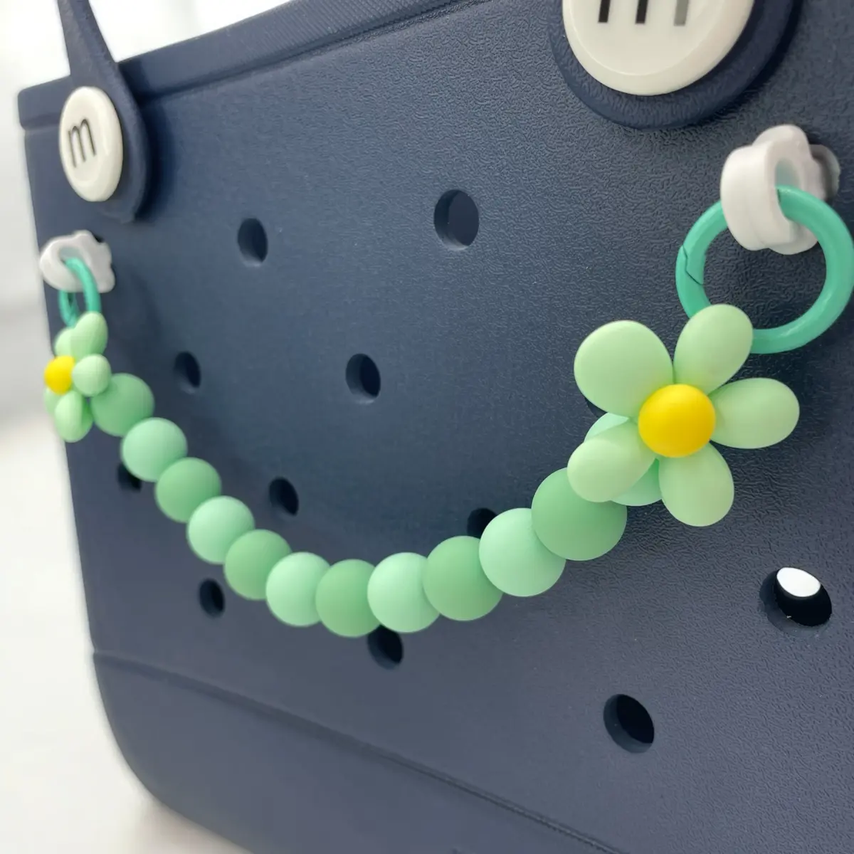 A türkiz, virágokkal díszített Muhm Lánc friss és természetközeli hangulatot áraszt. Tökéletes kiegészítő Muhm Bag táskádhoz, amely játékosságot és vidámságot kölcsönöz megjelenésednek.