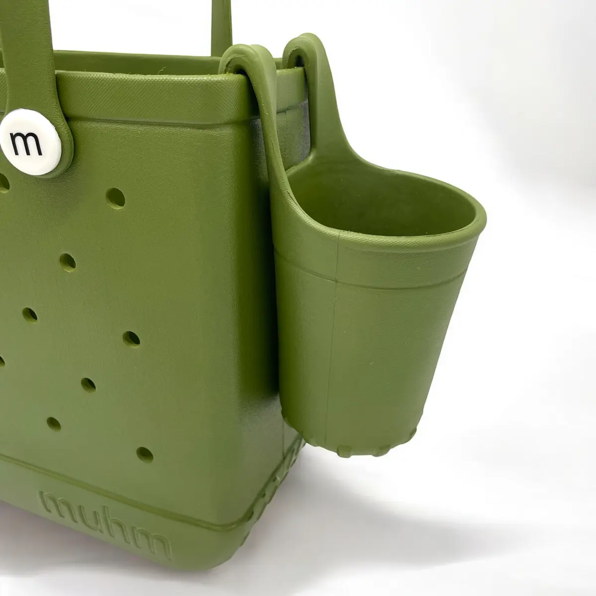 A sötétzöld Muhm Pohártartó természetközeli és praktikus kiegészítő, amely tökéletesen illik a Muhm Bag táskákhoz. Könnyedén rögzíthető, így italod mindig kéznél lesz, bárhová is mész.